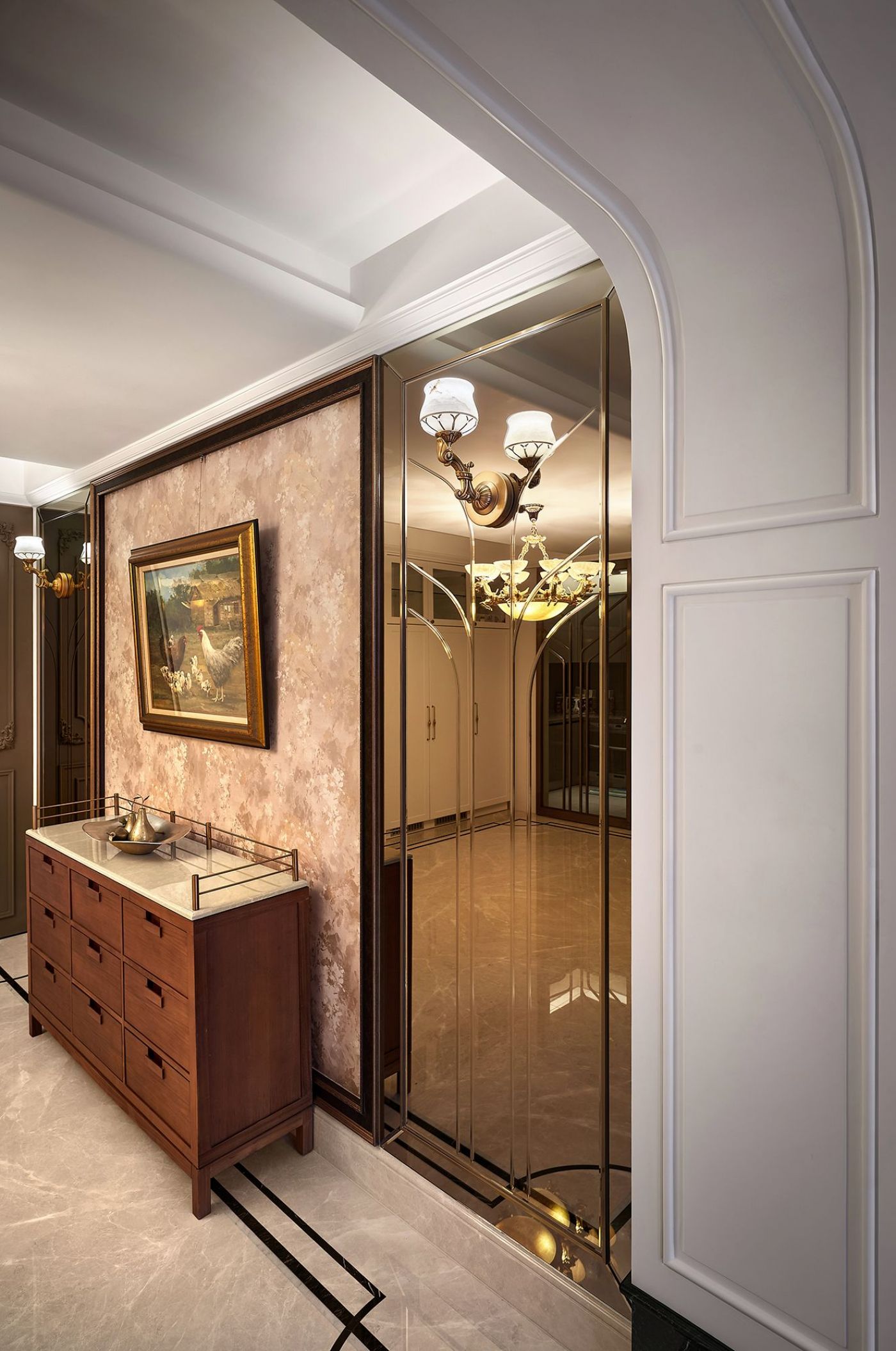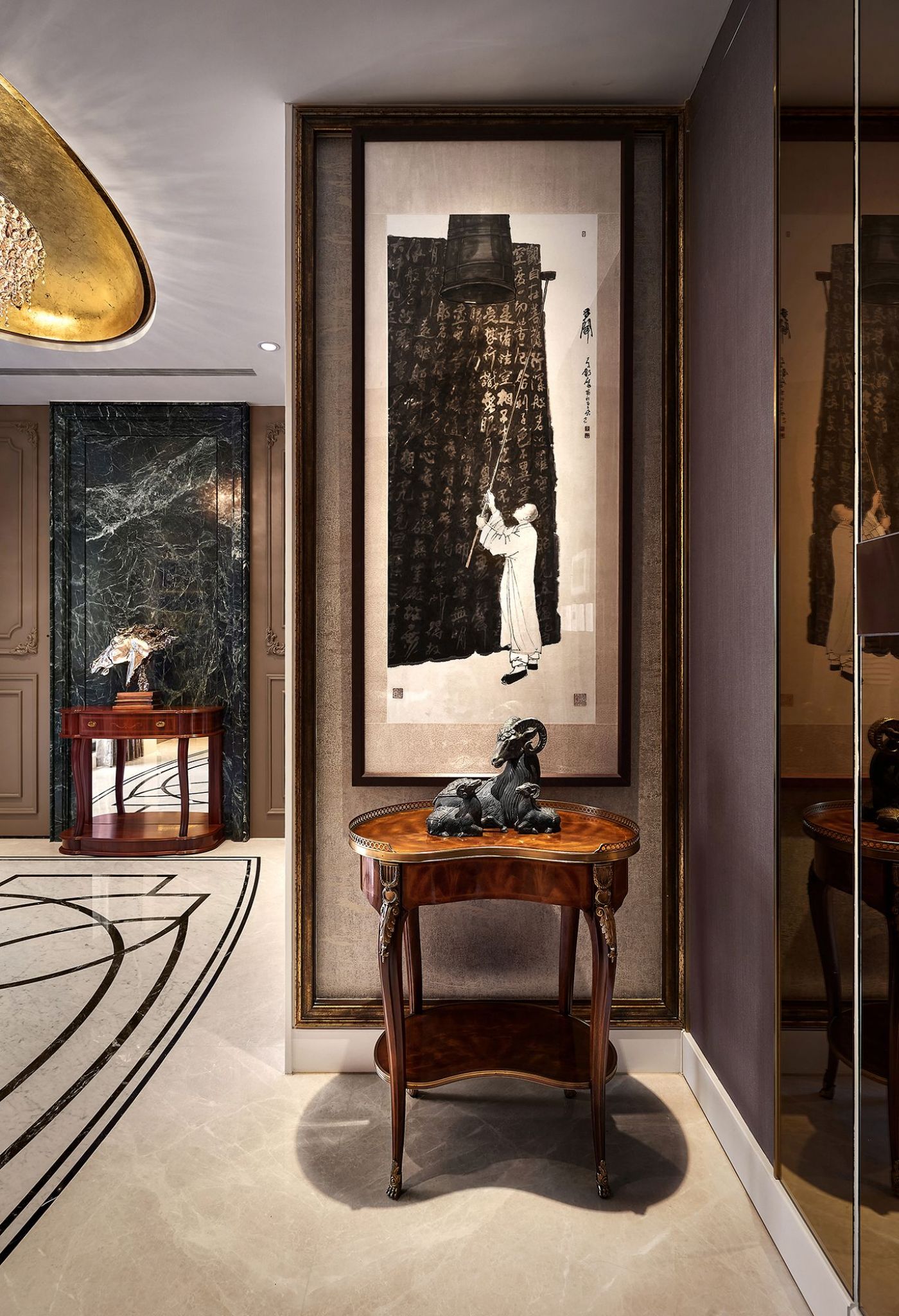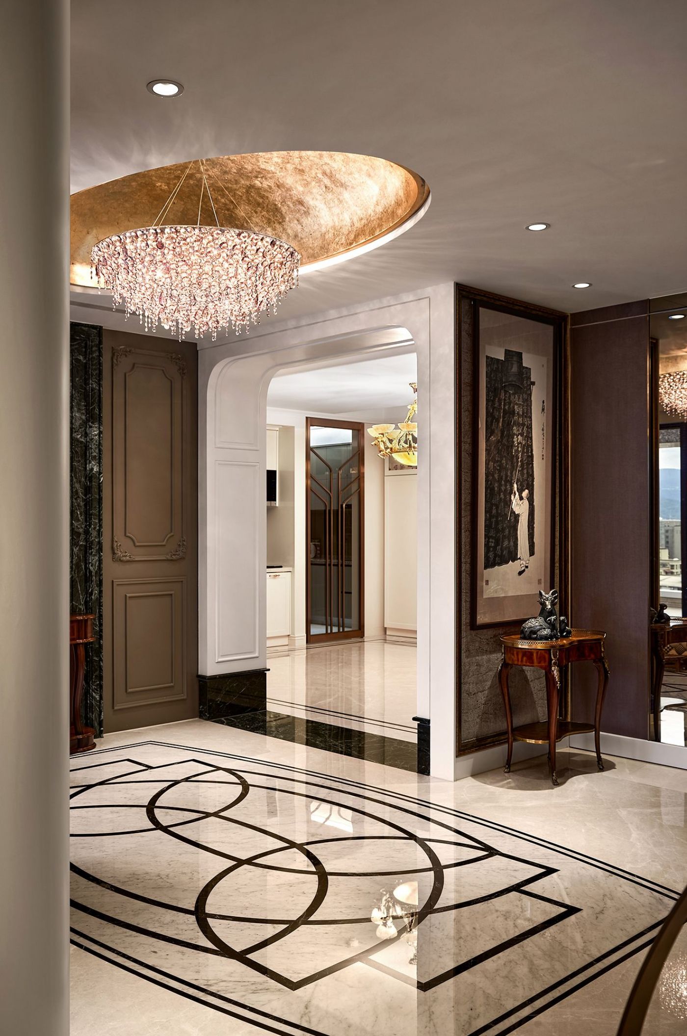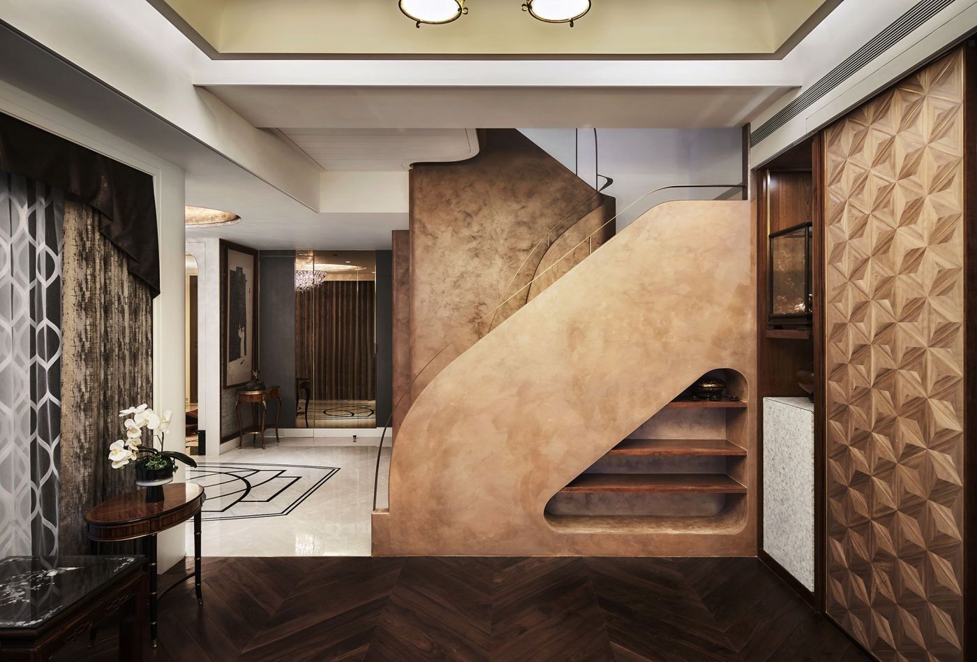 玄關的蛋形天花,表面貼附金箔搭配進口水晶燈,將質感與榮耀盡顯於此。