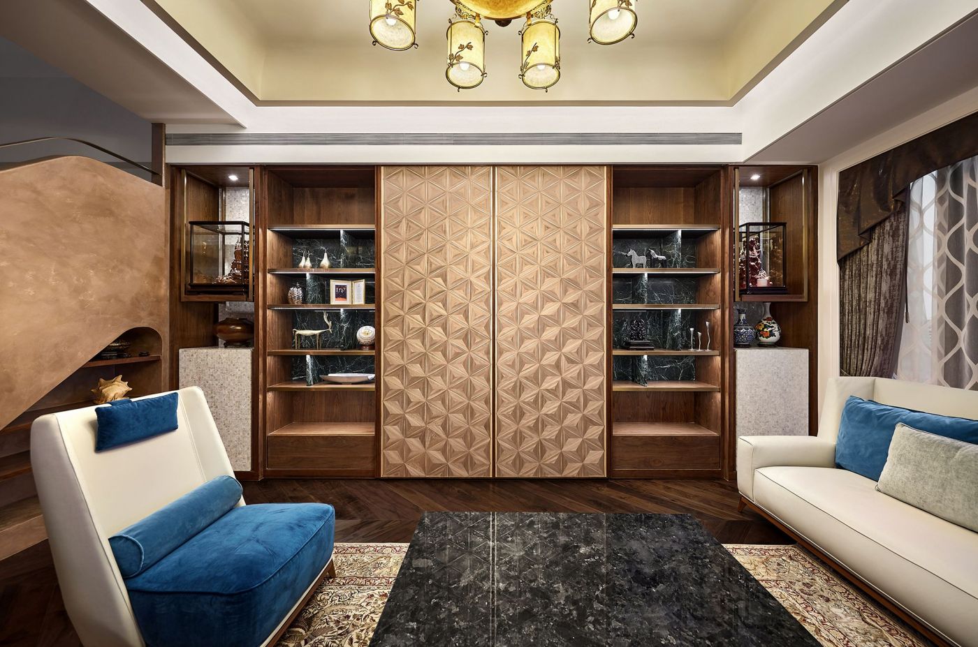 上層為獨立泡茶區、佛堂,兩間擁有完整更衣室與浴室的套房空間,方便孩子與孫子能隨時來陪伴。