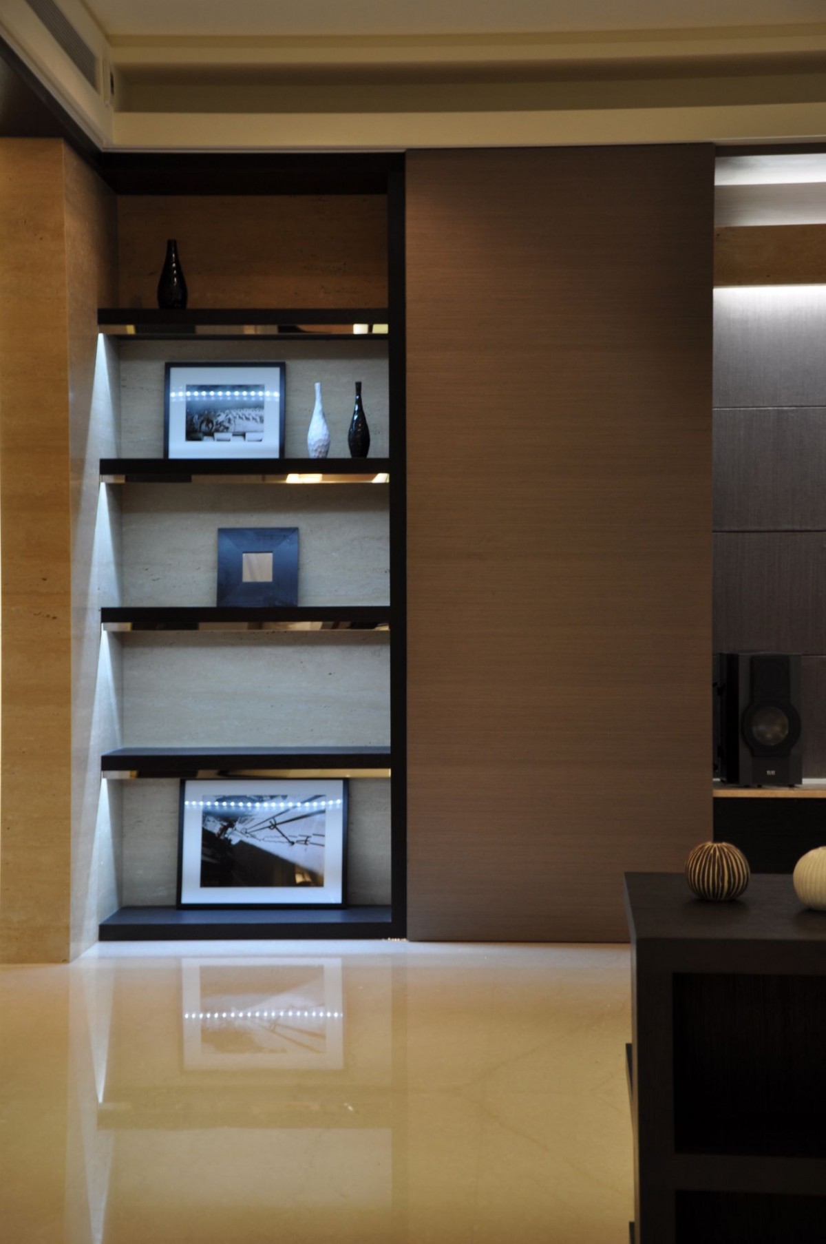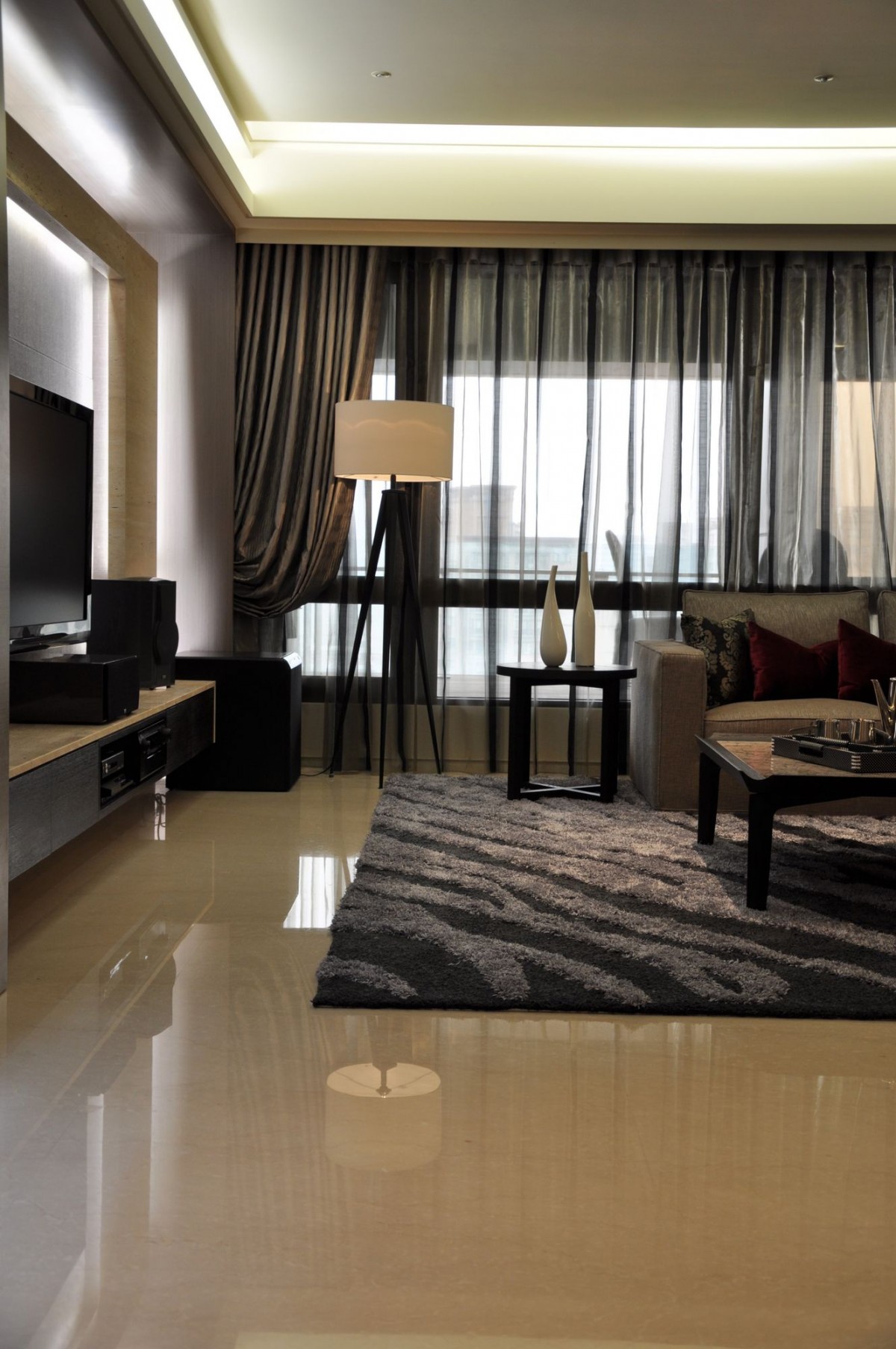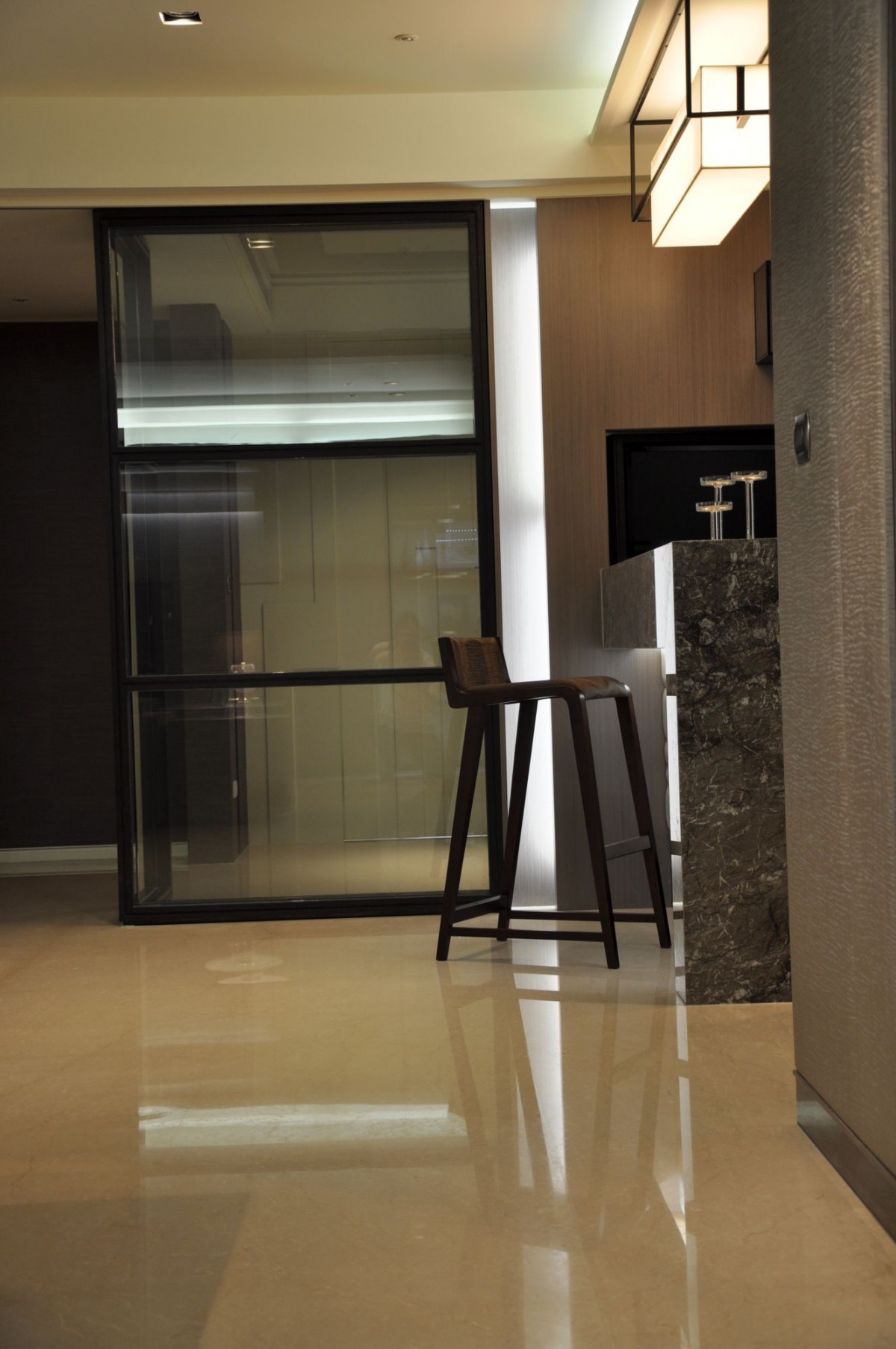讀一份質感 讀一份內涵 人的質感見於開口後 衣服質感見於觸摸後 而家的質感 在於感受後 甫入室的視覺焦點 是一份質感 光線明暗強弱 是一份質感 傢具呈現氛圍 是一份質感 木質的肌理與凹凸 是一份質感 現代的 落地而垂的透紗 半遮掩地 訴說著露台中小傢伙的身影 偷偷撈著金魚 搖晃著心愛的木馬 書房裡 喀喀的鍵盤聲 搭配i-phone音樂聲 廚房裡 鍋子燒菜的身影 在兩三坪大的空間裡 來回穿梭 家的紋理 在不知不覺的時鐘滴答聲裡 收集穿過瞳孔的影像 來回播放