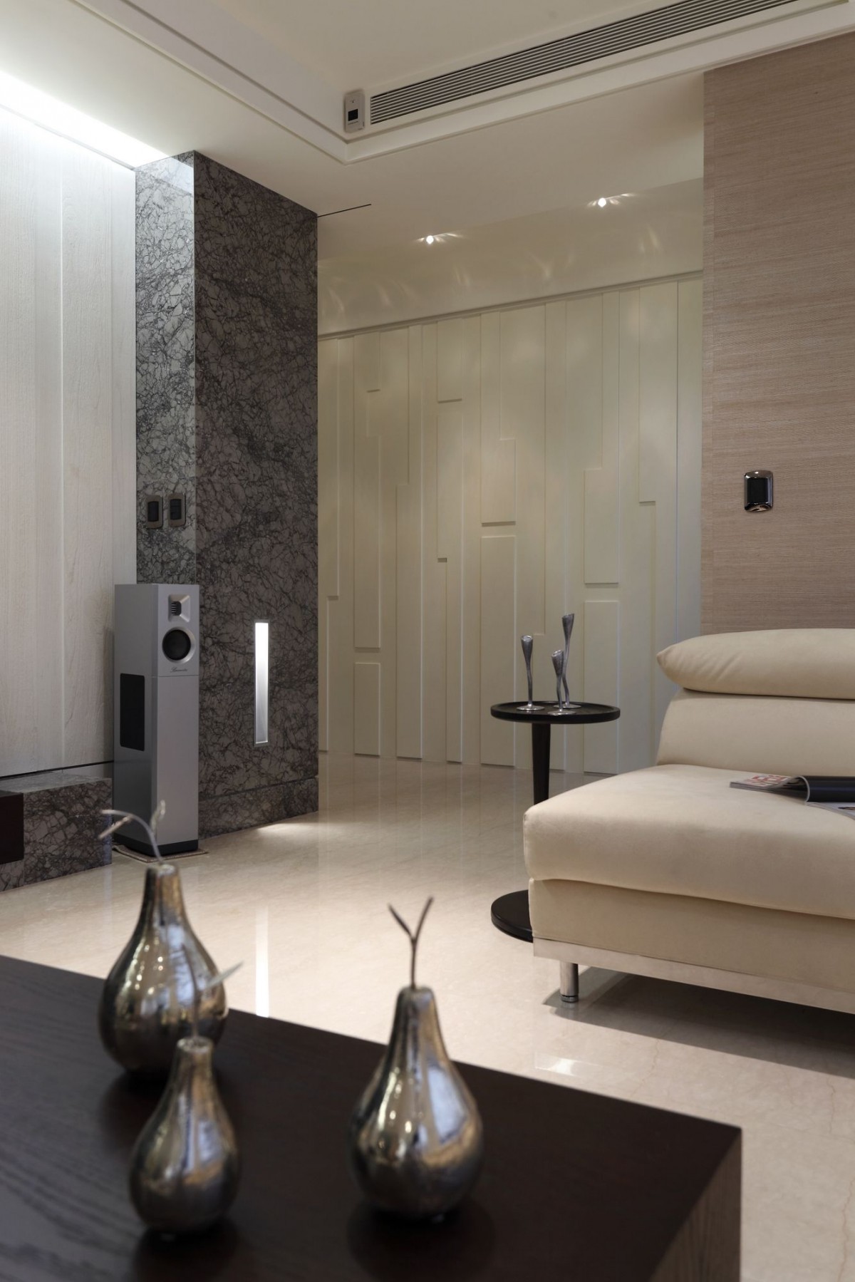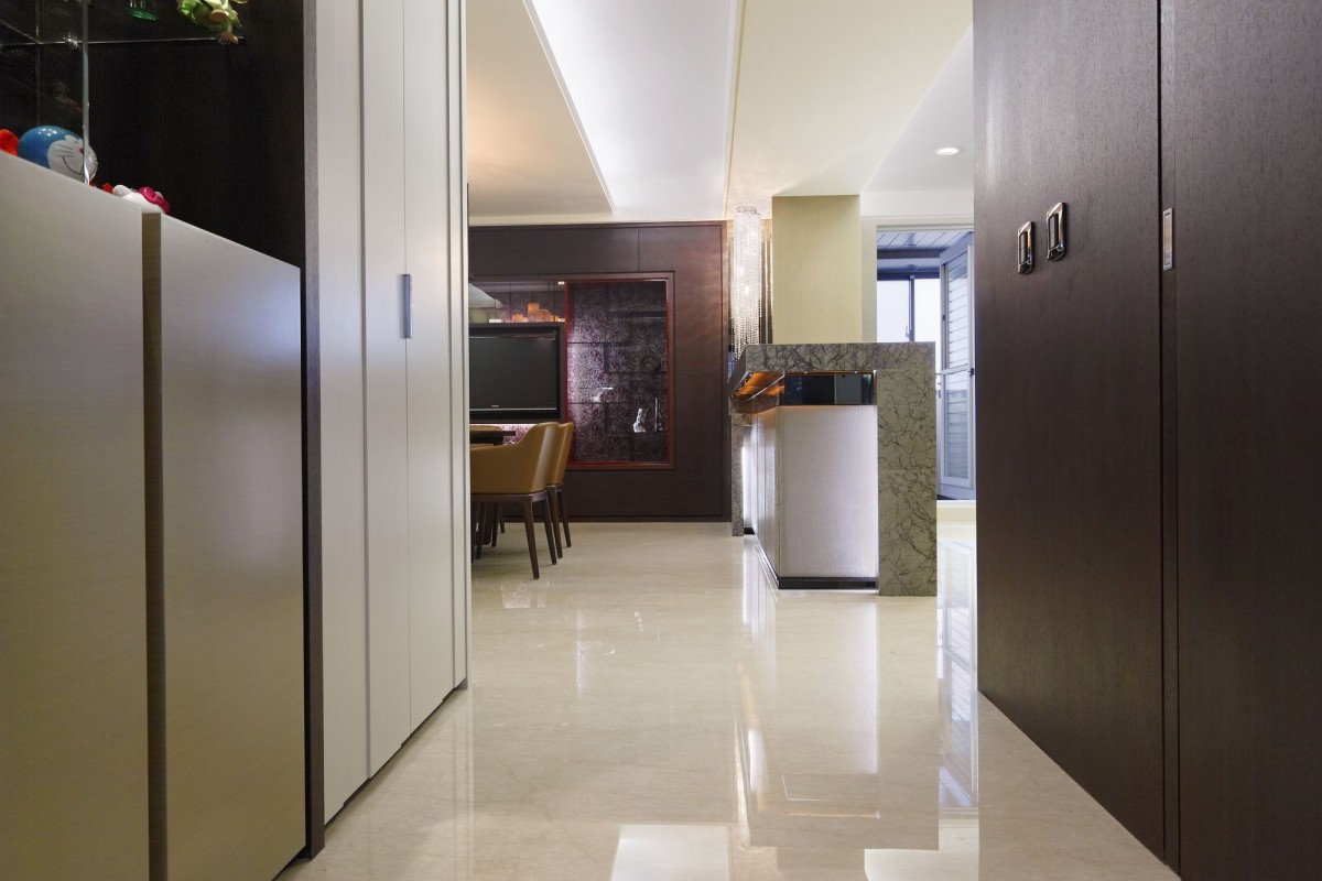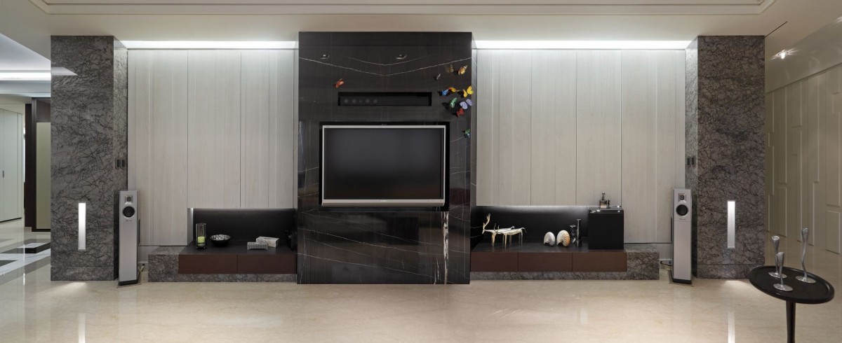 舞台下 真實的人生樣貌 空間 應該是最直接呈現 舞台上 四處飛奔 游移於各城市 充滿各種動能 而落了舞台 就有如回到最原始的自我 打打小麻將 烤個小餅乾 偶爾泡個私人SPA 作一切屬於自己 落了盔甲後所有想做的事 水晶與琉璃燈 將素雅的空間 粧點成另一個私人舞台 視聽設備成為每個空間的主角 依著屋主的喜好享受著不寧靜的美好 大片窗景流洩桂花香 偷偷闖入的陽光灑了一地美好 所有的掌聲在這片落地前止步 因為這裡屬於私人 屬於單純的美好
