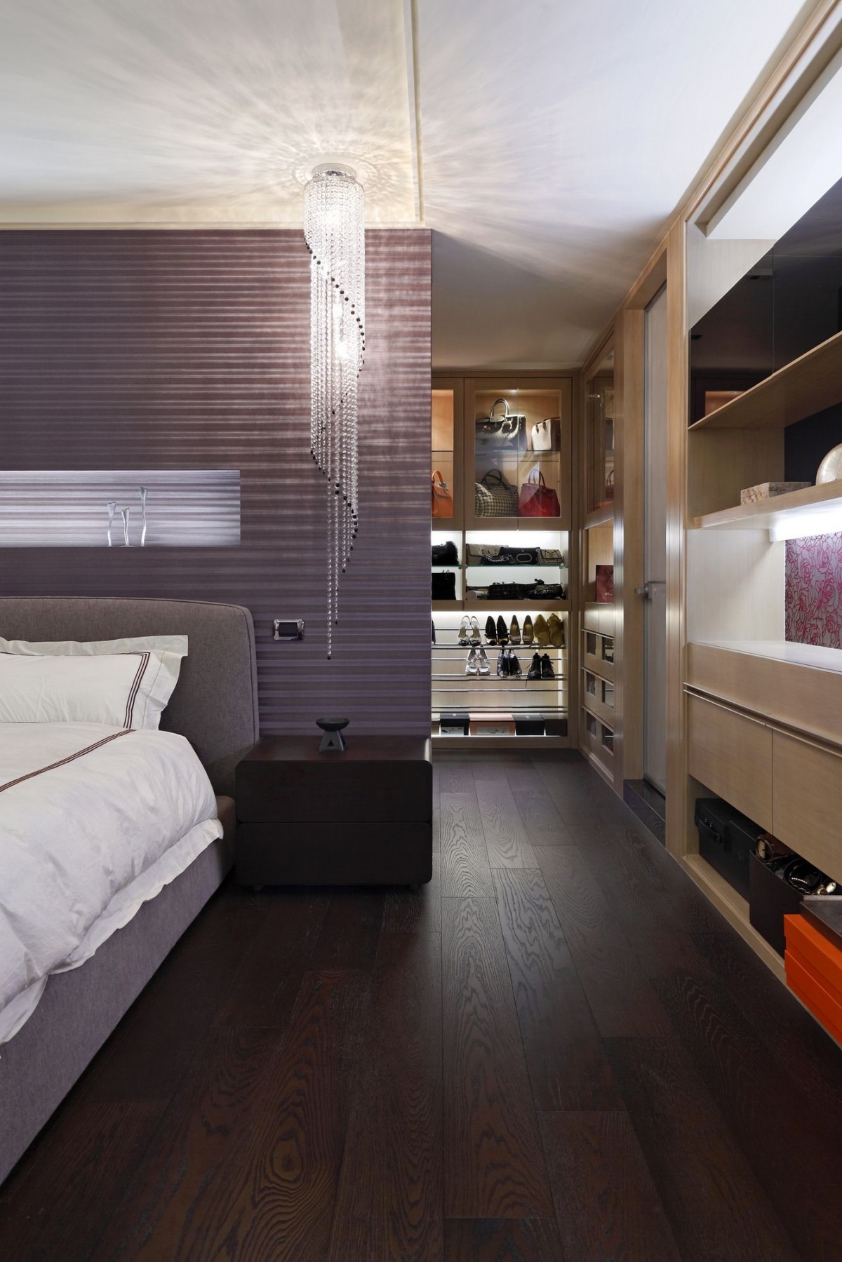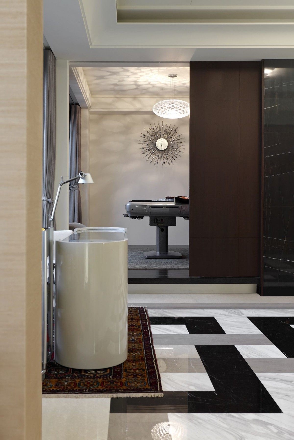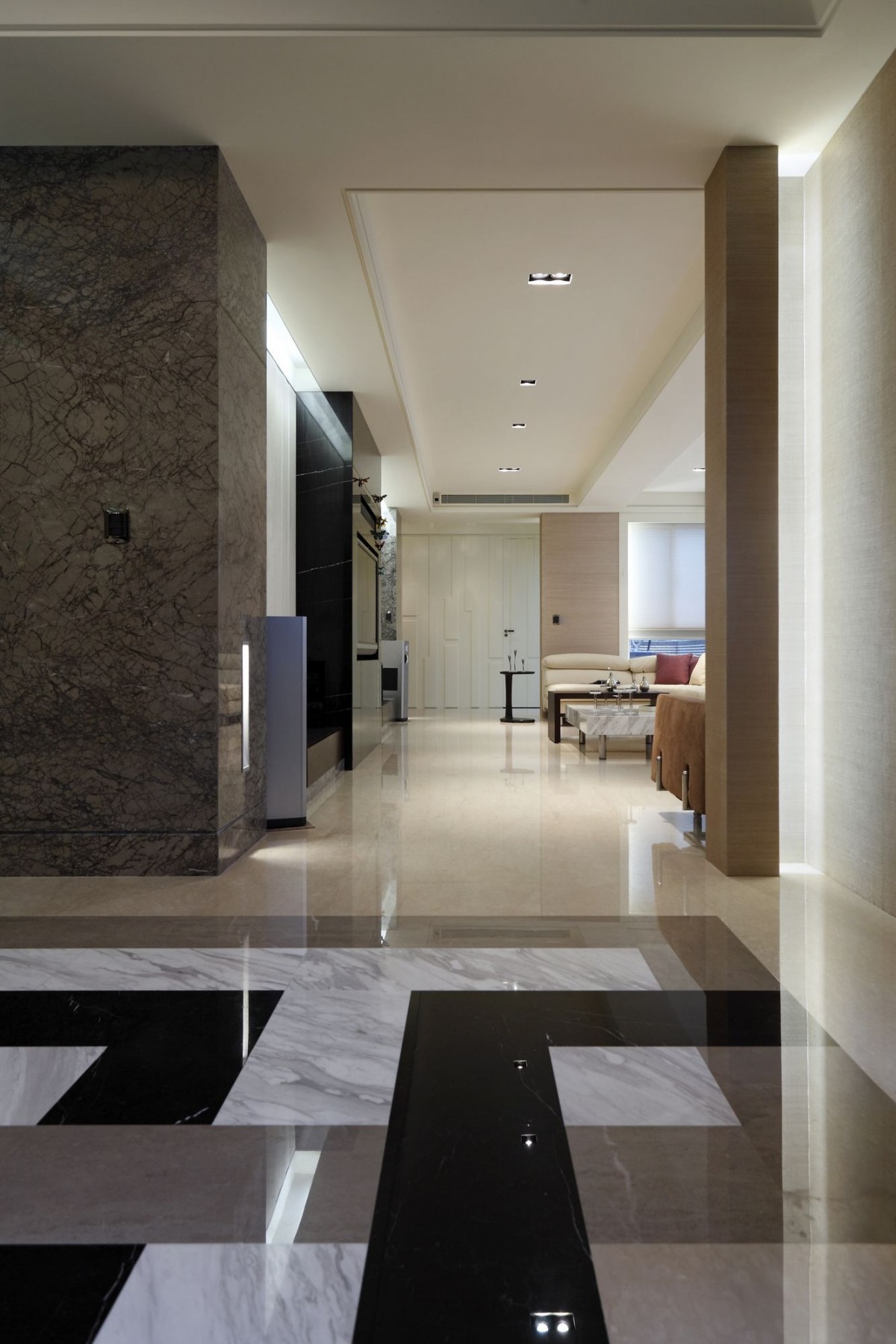 舞台下 真實的人生樣貌 空間 應該是最直接呈現 舞台上 四處飛奔 游移於各城市 充滿各種動能 而落了舞台 就有如回到最原始的自我 打打小麻將 烤個小餅乾 偶爾泡個私人SPA 作一切屬於自己 落了盔甲後所有想做的事 水晶與琉璃燈 將素雅的空間 粧點成另一個私人舞台 視聽設備成為每個空間的主角 依著屋主的喜好享受著不寧靜的美好 大片窗景流洩桂花香 偷偷闖入的陽光灑了一地美好 所有的掌聲在這片落地前止步 因為這裡屬於私人 屬於單純的美好