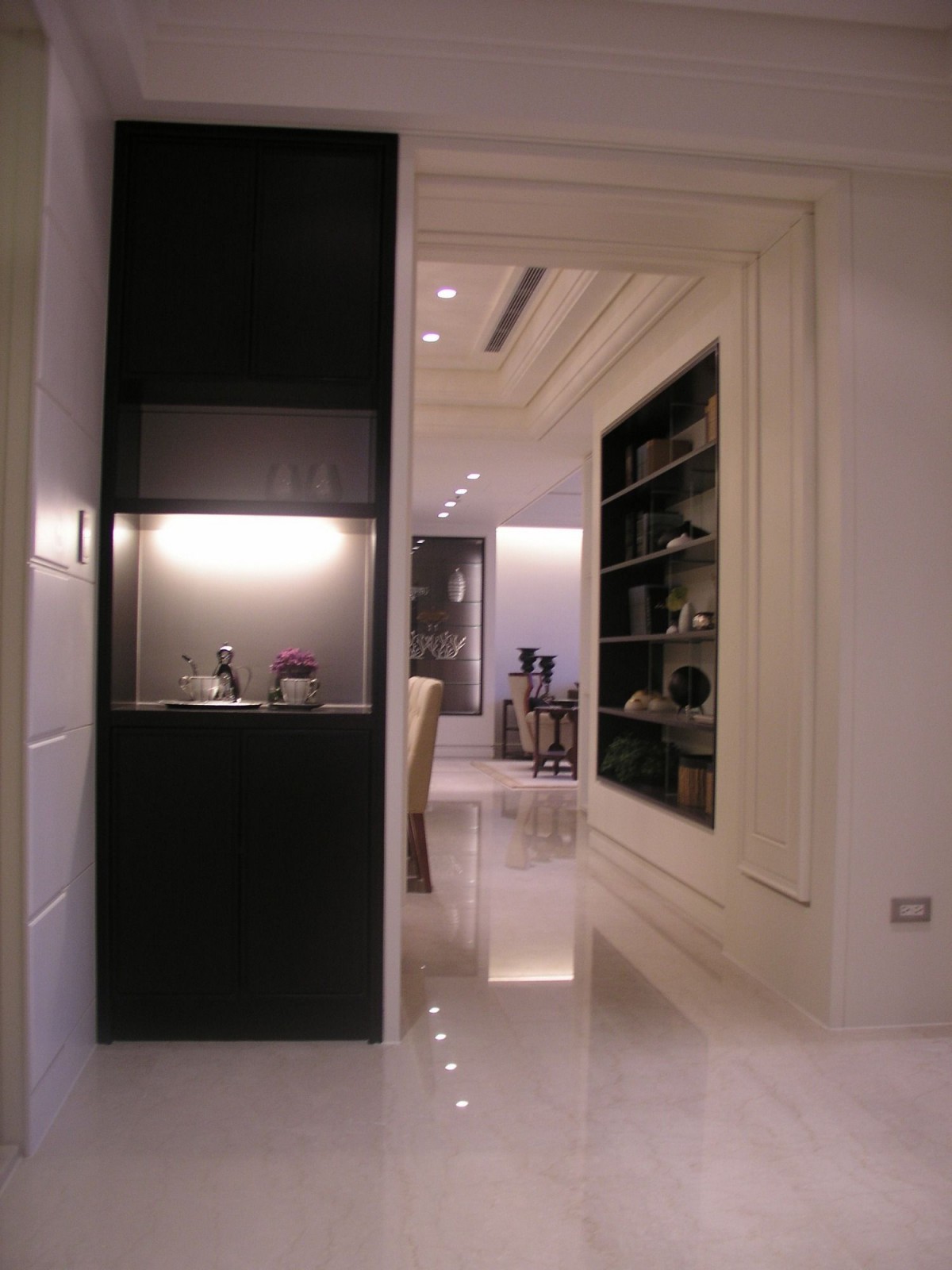 白 有如仰望藍天 瞬間飄過的白雲 清新甜美 落入空間的白 有如名畫裡那個不擁擠的角落 舒服 沉靜 留白讓畫作比例合宜 留白讓空間得以呼吸 空間的白與清玻璃 產生的穿透力 有如戴起透視眼鏡一覽無遺 自由轉換的電視機 隱藏的暗門 空間的變化莫測 在素白的牆裡 悠遊 自在 跳躍 大器的白顯現出 居住者的不凡氣度