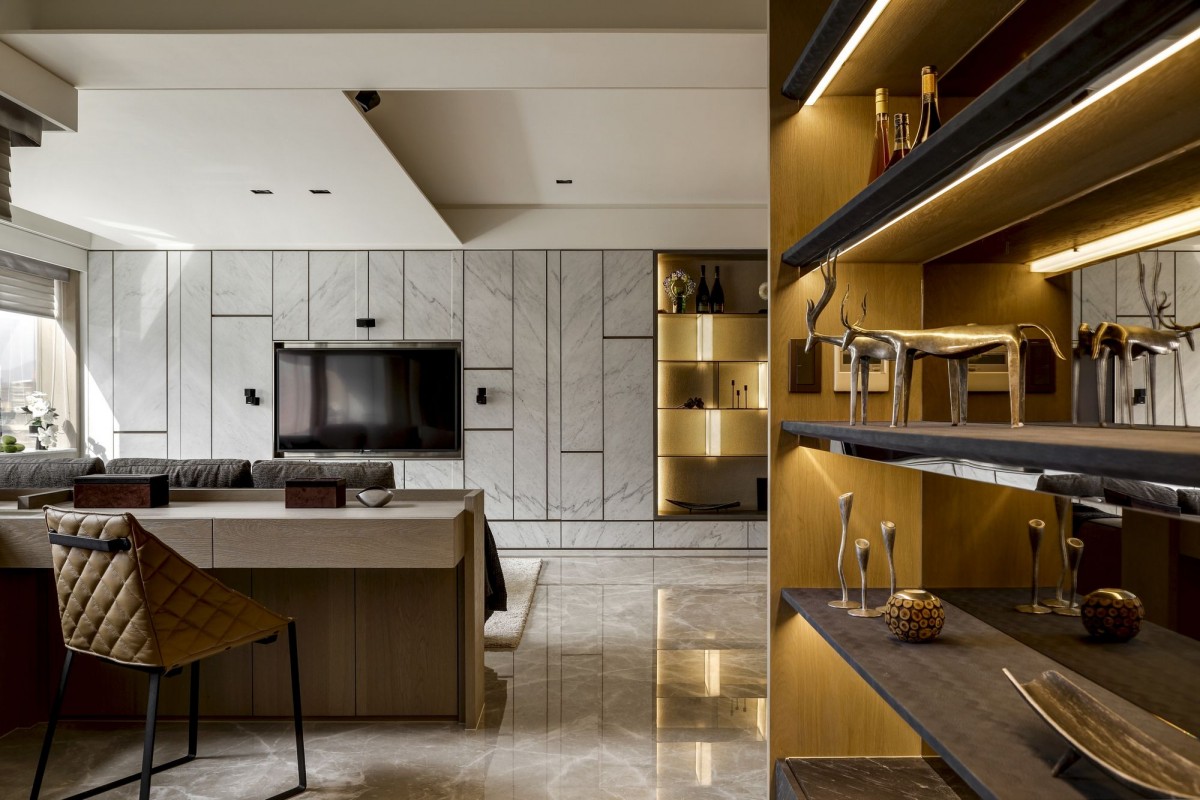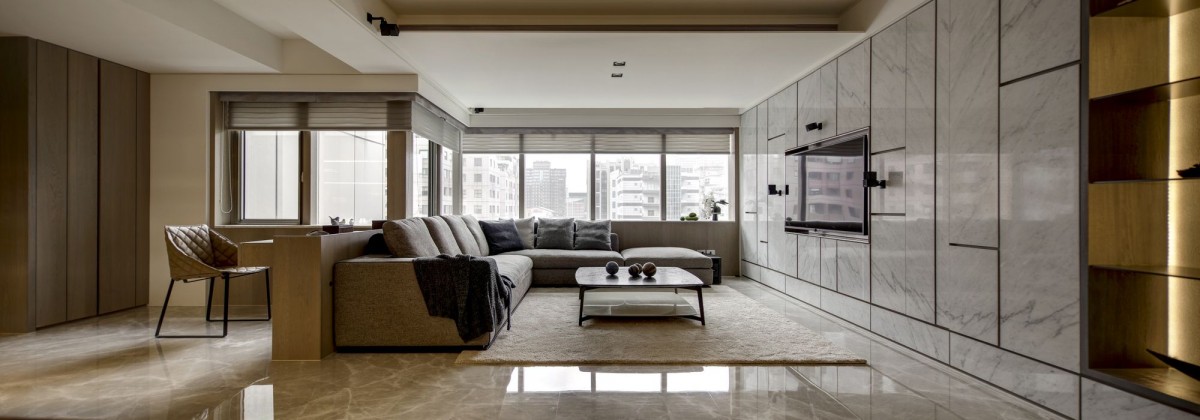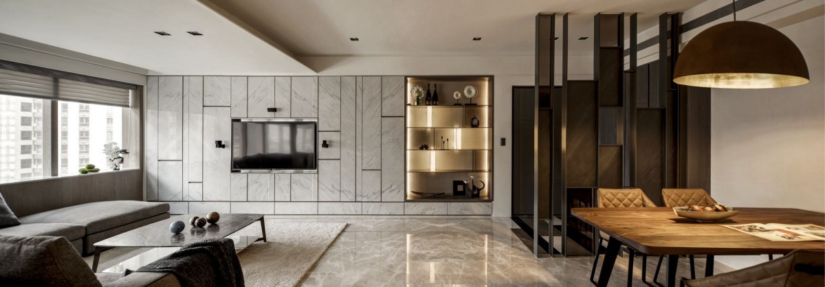 這是一種精緻的 有品味的 屬於都會的設計概念 回到家映入眼簾的 如此SOFT色調 灰 黑 白 米 時髦帶點奢華 鍾愛的擺飾 擺好Pose斜躺在屬於她的展櫃 如明星般 華麗閃亮 白淨的卡拉拉石 噴灑些許灰色調 比例與實用間 拿捏恰當 與粗曠的灰色板岩 互成對比 互為映照 家 如此令人感動 如此令人眷戀 如此明曜動人