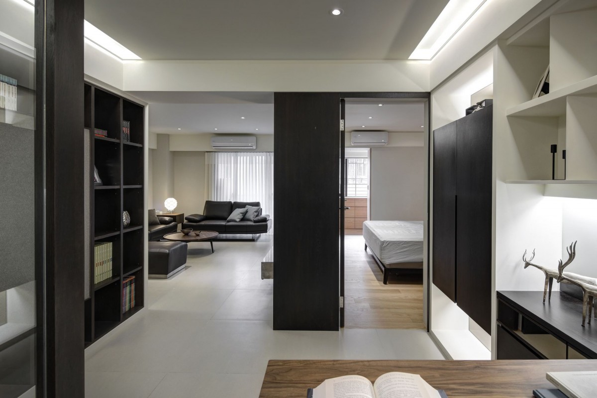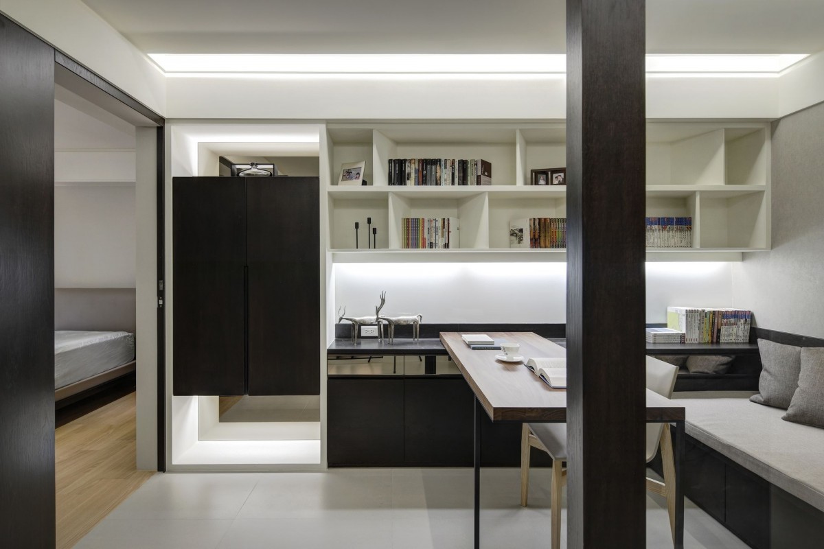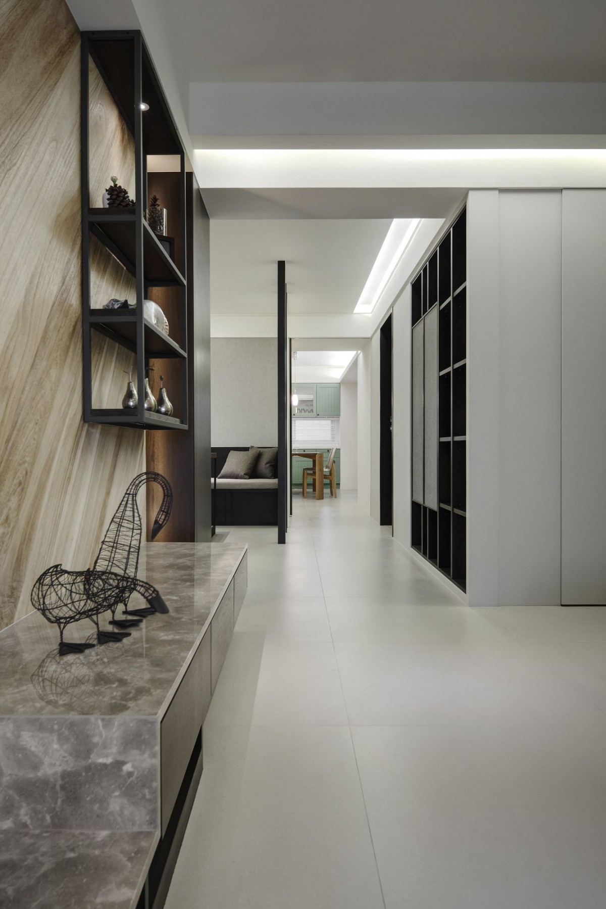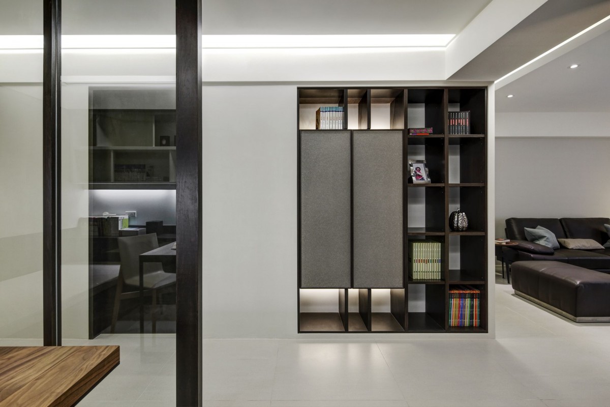 一家四口的書香家居 譜出空間的基調 讀書聲 喀喀做響鍵盤聲 在流動性十足的半開放書房 各取所需 各投所好 那些知性的 專業的 旅遊的 心靈的 展示在自由游走間隨手取得處 穿越 不再只是穿越 扮隨著腳步聲 心靈愈發成長 空間的端景 是一幅美麗的畫 畫裡有前後左右穿梭的身影 安靜埋首或讀書 或寫字 桌邊置放著黃澄澄的鮮榨柳橙汁 書香 木紋香漾成的滿室香 伴隨烤箱滴搭計時聲 在時光流轉裡凍結 框出一幅 動人的無價畫作