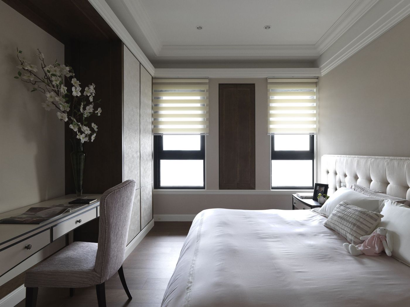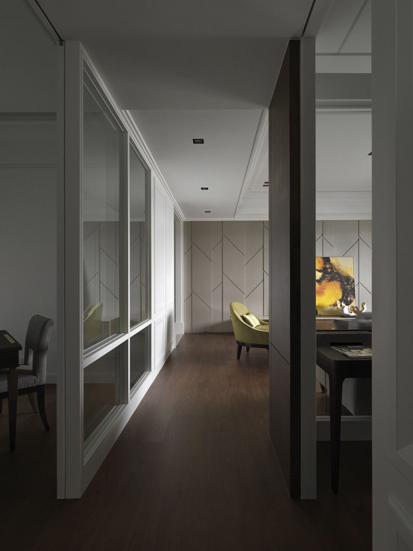 空間千姿百態 有時好似遺態萬千的嬌艷女郎 有時又像個西裝筆挺的紳士 有時像個活蹦亂跳的年輕人 有時樸素到像個素淨的修女 在米灰格子拼花中 帶您一同進入空間的美好 閱覽素淨的白牆 框點出層疊的白色漸層 雖為古典 卻帶有一絲英倫氣質 隱約透露出英式浪漫 呼吸的空氣 也透著這股美好 空間的調性 如有機體般 在空間生長蔓延